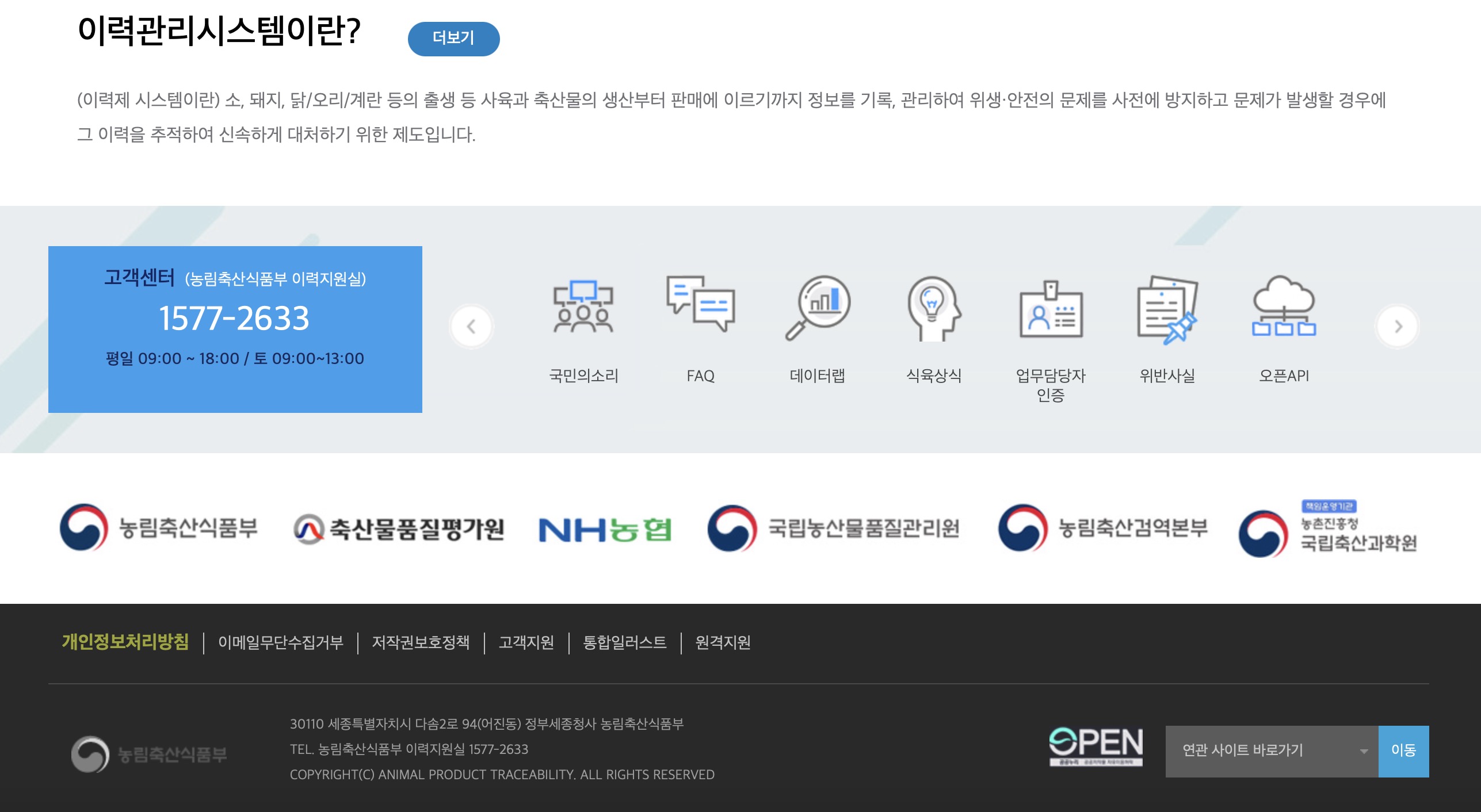 소비자에게 축산물의 이력 정보를 제공함으로써, 신뢰도를 높이고 소비자 보호에 기여합니다. - 문제 발생 시 신속 대응: