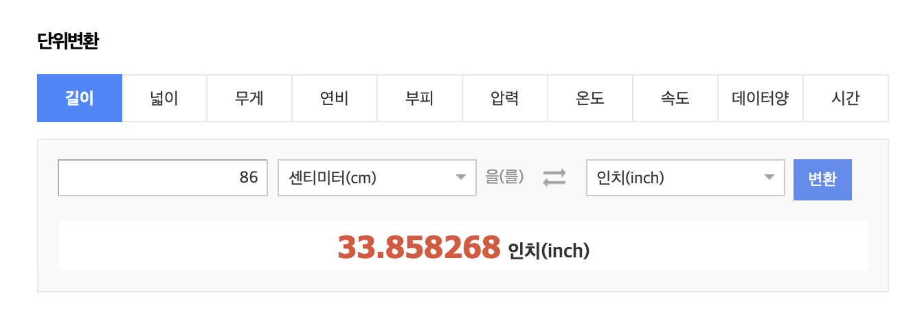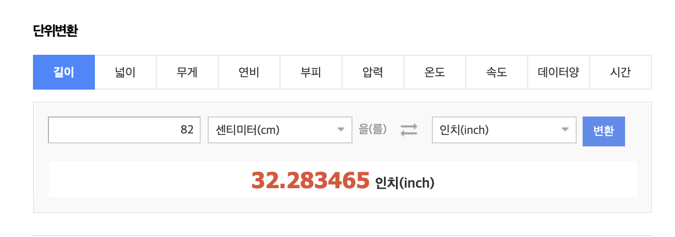 82cm는 32.283465인치 inch 였었고